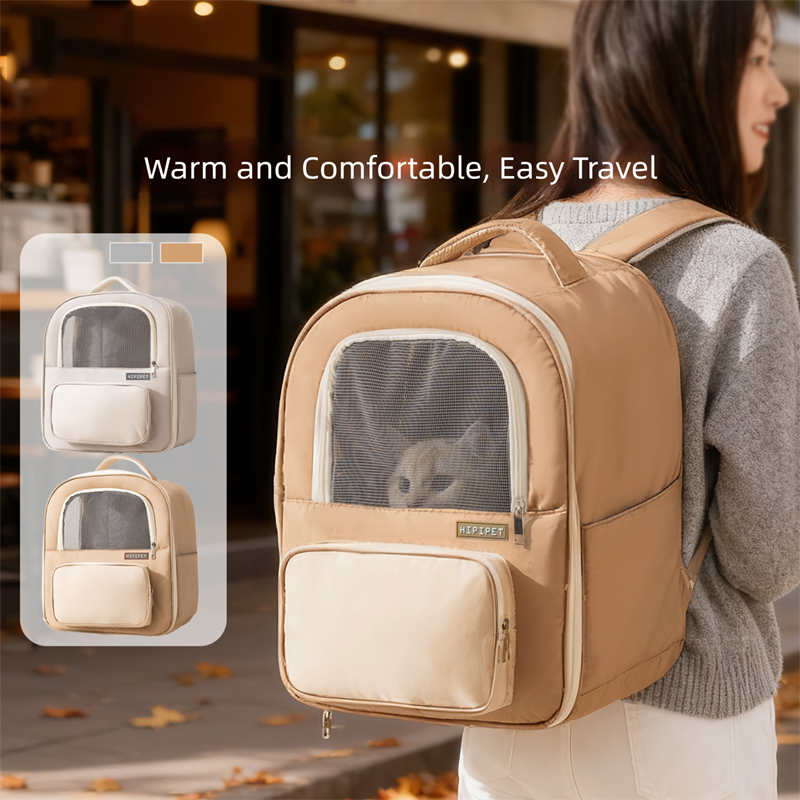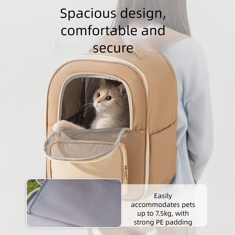 Make pet travel easy and stylish with the Hexipet Pet carrier Backpack! This backpack is designed with a breathable mesh window, ensuring visibility and ventilation. It keeps your cat or dog warm, comfortable and safe during your journey. Optional neutral tones (beige and gray-beige), it features a spacious main compartment, a necessary front pocket, and a durable structure. The ideal daily walk, trip or outdoor adventure makes it convenient and stylish for you and your pet to travel. One must find a functional, comfortable and fashionable way for pet parents to carry their furry companions!