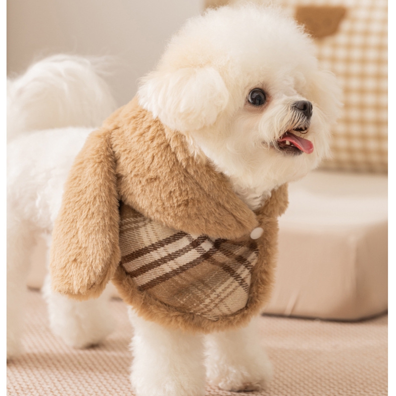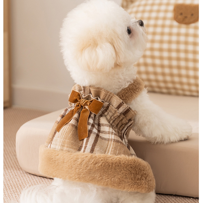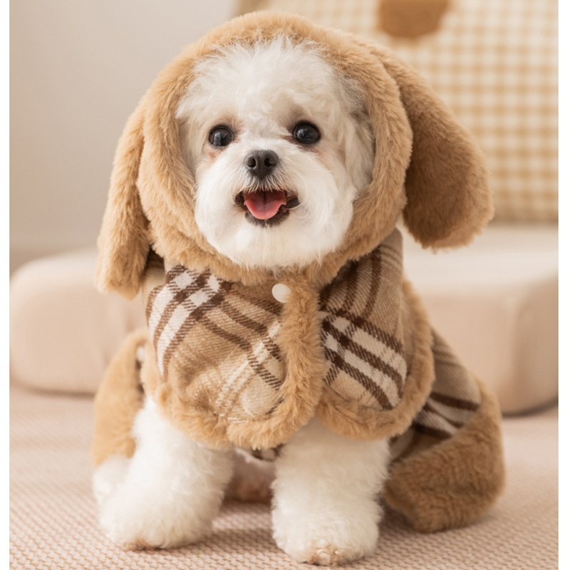 Charming two-piece set includes a vintage plaid hooded cape and matching dress—a timeless Cute Pet Outfit perfect for holiday gatherings, themed parties, or professional Photoshoot sessions.